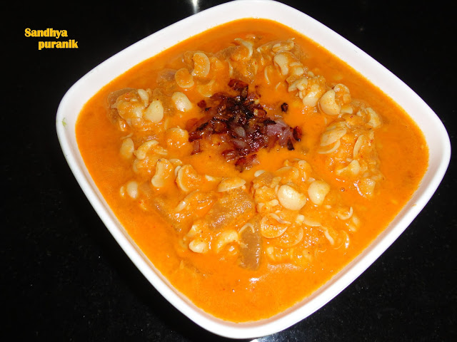 This curry goes well with dosas as well as idlies too.Here is a picture of the curry served with Khottos(idlies steamed in jackfruit leaves moulds).