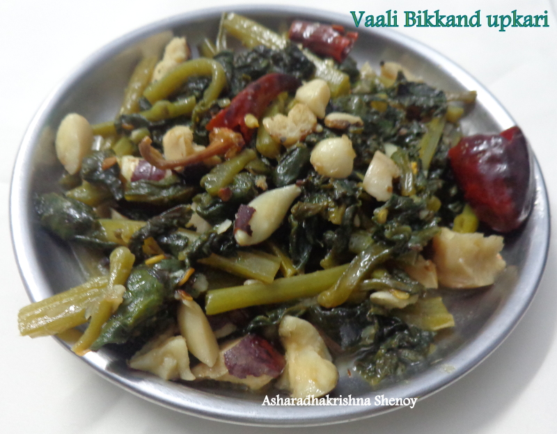 Vaali as it is known in konkani is widely known as Malabar Spinach in English,Malabar cheera in malayalam and Bassale in kannada and tulu languages.It is a popular leafy green vegetable commonly grown as backyard plant in the GSB home gardens.This is a seasonal veggie