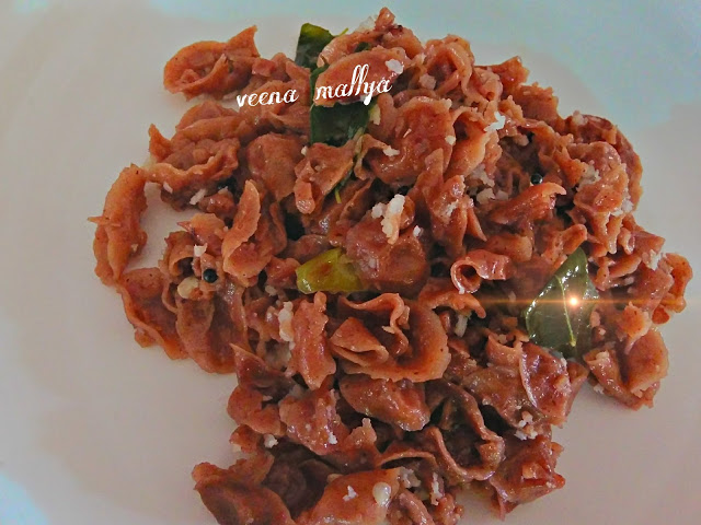 Nanchenya Vodi Usli is a breakfast dish. These ragi vodis are available only in and around Mangalore, especially at Puttur. These special vodis are used only to do this dish as seen in the pic below . We can’t use the ones which are made for deep frying. This is a very healthy dish which be eaten even on upavas days.