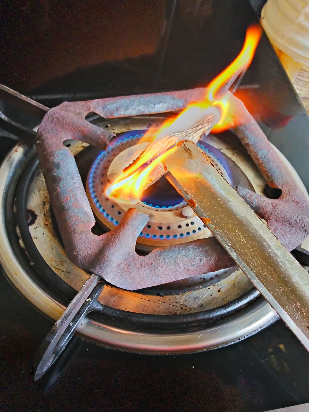 - lastly add freshly burnt wood pieces in the tempering, Burn the wood piece as shown in the pic below .