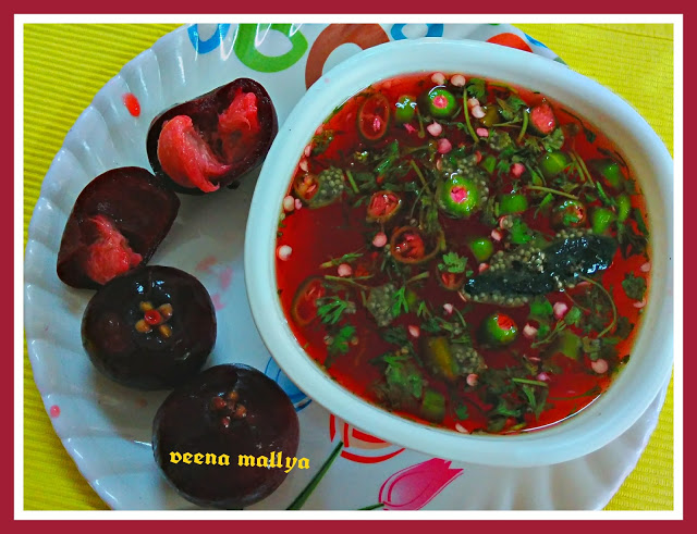 This is a recipe of GSB’S of North Karnataka. I have already given two kokum saaru recipes earlier . This is an unusual one that includes adding a burnt wood ( usually a coconut shell ) to lend it an unique flavour . Please try this out .