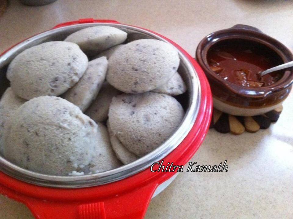 Usually we use the white urad for making idlis , Sandhan ,dosa or appos . You may also the black urad ( Urad with its skin ) for making similar dishes . this is more nutritious and fibre rich . Even though it may not score on the appearances it is definitely more power packed than the regular idlis ! So lets try out the recipe :-