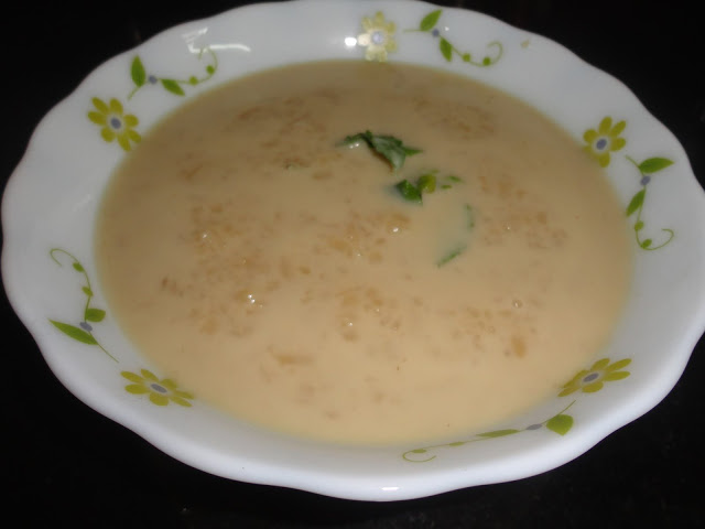 This pic is courtesy my friend – Sandhya Puranik  who has followed the same method but used thick phovu . This tends to thicken quickly so just before serving add some reserved coconut milk or plain milk   and warm again . adding cardamom to the coconut milk  gives an extra flavour to it !! Some prefer to crush the phovu after roasting   ! This is the right consistency for  serving !