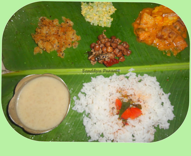 Ashtami feast after the pooja with Naivedya offerings…. phova panchkadayi, phova kheeri and mugadali pachadi offered as naivedya,chane usli prepared for phalahara at noon …sheeth saaru and gajbaje