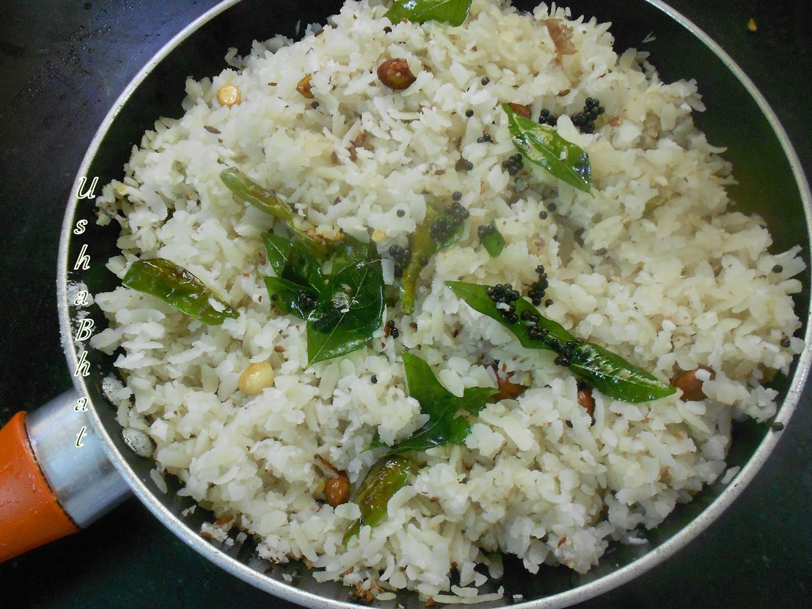Phova Upma / usli is an easy , quick to make and a filling breakfast dish ! This is usually made by Kochi side GSBs . Here is how to make it !