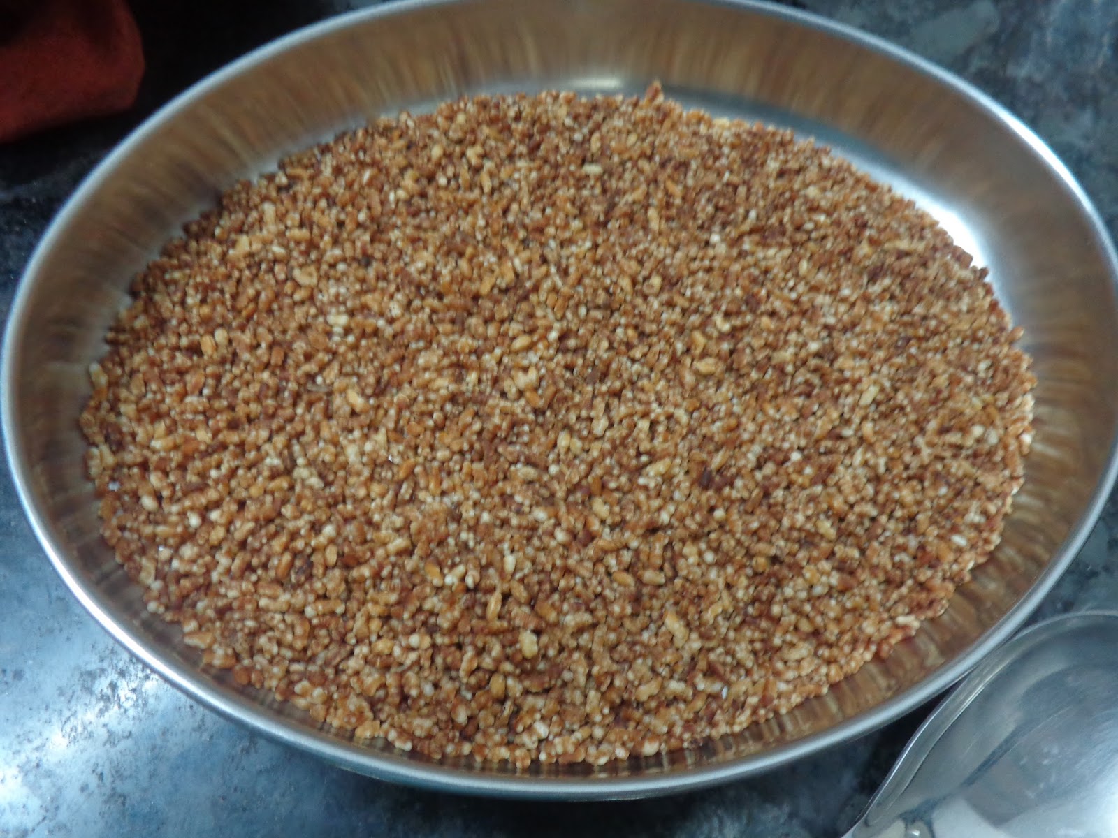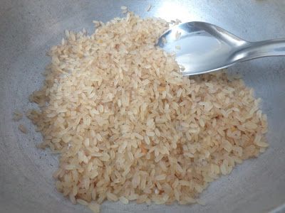 - In a thick kadai roast the rice on medium flame, keep stirring and roast till the the rice grains pops.