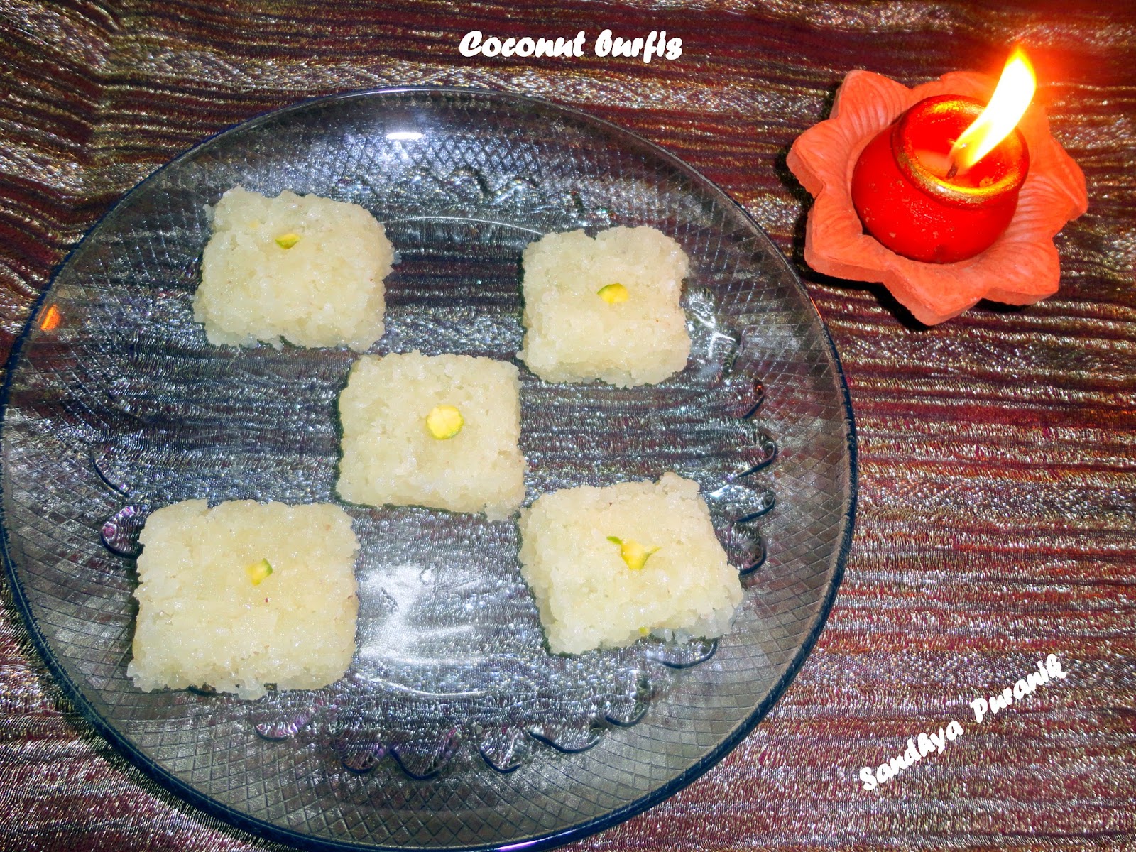 We GSb’s use lots of coconut in our cooking !! So it’s no surprise that we prepare burfis with the same. This is a very simple recipe which uses minimum ingredients but is great on taste due to the coconut. This sweet can be made on any occasion or just like that whenever you feel like. I have made it a couple of times now and hence thought of sharing it here by explaining it in best possible way .Do try this for any special occasion or for your sweet cravings.
