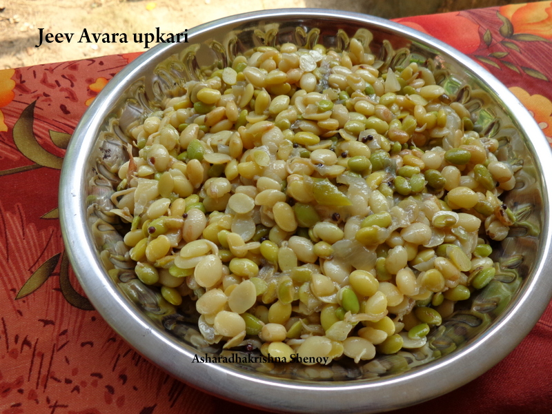 Here is a simple upkari but its so really tasty. It almost tastes like bibbe upkari (tender cashew).This upkari can be done with fresh lima beans or Jeev Avro/Avrekalu which is available during winter season.Lets check the recipe.You can find recipes with avro Here in this blog