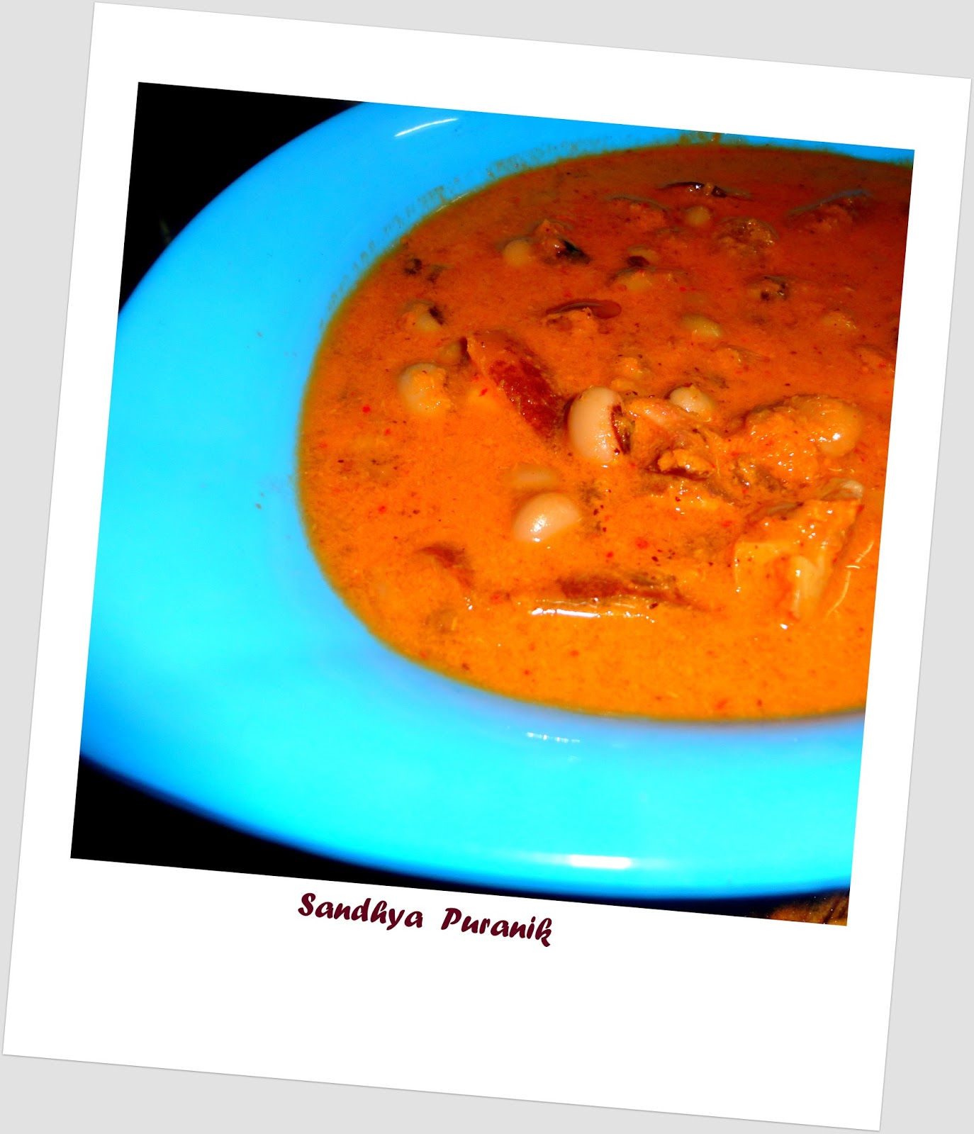 Koddel is a coconut based gravy dish using pulse from South Kanara. I have already shared Koddel recipe using red chavli( Bagdo) here .Today sharing another version using Chavli / Alsando.Each pulse has its own taste though the basic ground paste remains same.Do try this version too.