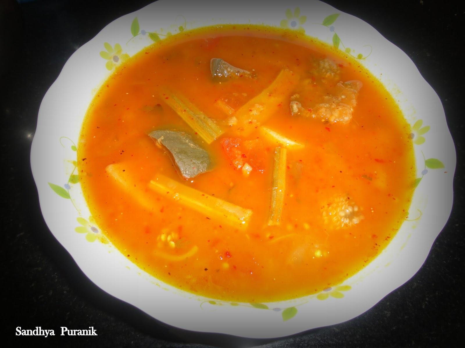 - Meanwhile pressure cook the potatoes,gulla and drumsticks with a bit of salt for 1-2 whistles.
