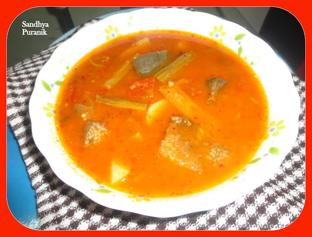 Kolmbo is our version of Sambhar.I have already shared Kolmbo recipe using Pumpkin Here .Today I am sharing one more version which is a favourite with many because of the vegetable combo ..Infact it is said to be the classic combo and the best of all the Kolmbos we prepare as it has the Gulla(local variety brinjal from Udupi),Potatoes and drumsticks.So let’s proceed with the recipe without much delay.