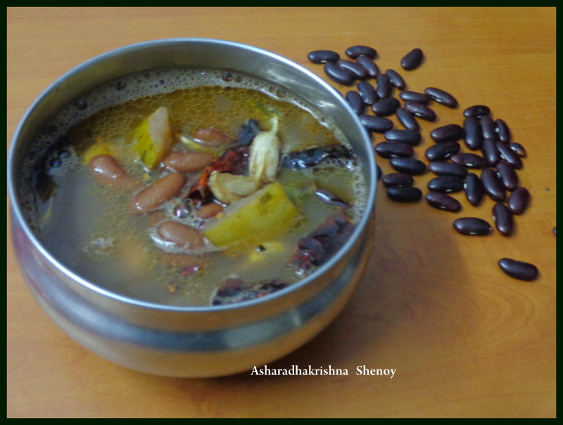 This is the best way to introduce pulses in your daily menu as this requires very less effort to prepare and is healthy too.The bean when slightly overcooked becomes soft and mushy and makes a good broth.This curry can be prepared the same way with moong,kulith,black/white channa,alsande bee (lobia)Thingalavare etc…