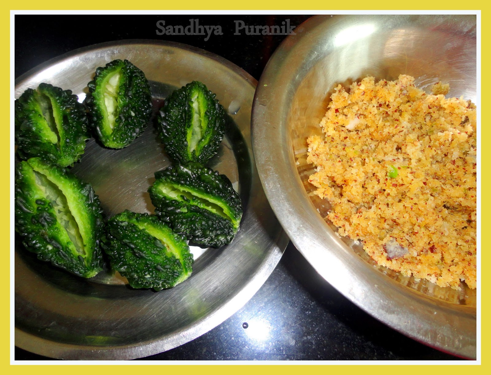 - Wash the bittergourds to remove the bitterness,stuff the coconut filling into each slit and steam them for 15-20 minutes.