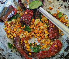 Grind the fried ingredients and tamarind with enough water to a smooth paste in a mixer.