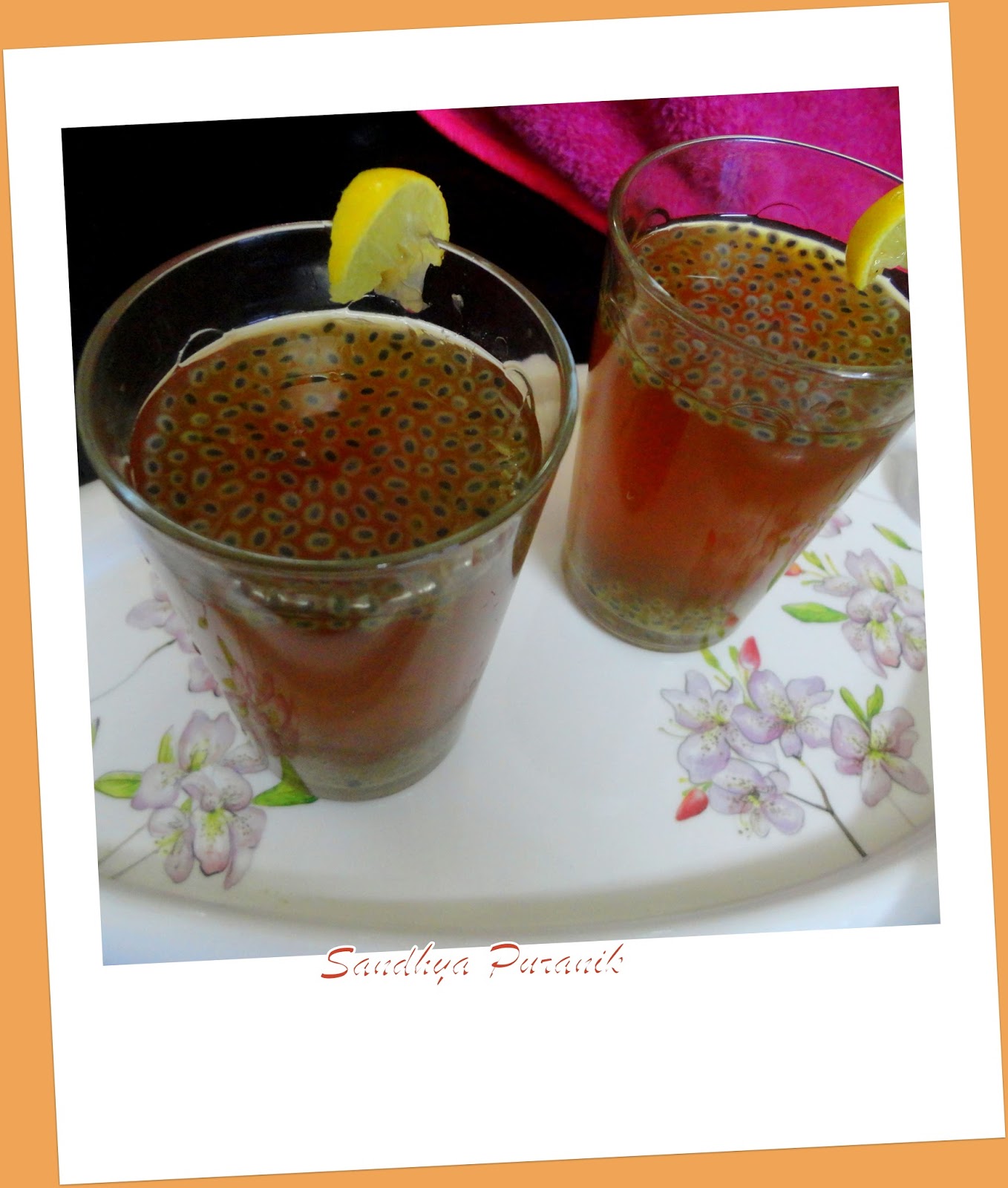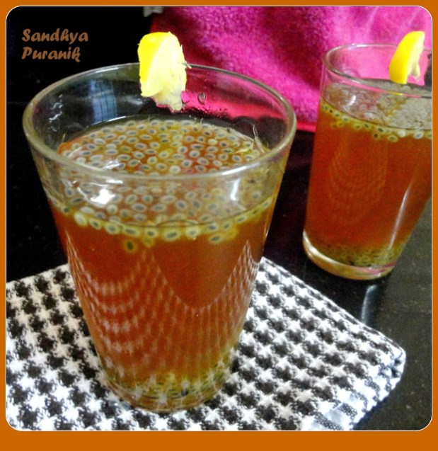 Recently during a visit to my relatives house in my native place , I was welcomed with this drink which I loved and enjoyed as it was too hot.I was surprised to see some seeds which resembled sabja but when I enquired I was told that it was Kamakasturi seeds which needs to be soaked in water and used.I was also told how healthy they are and about its cooling effects on our body and system and that the seeds are used since long for curing body heat. Later when I googled for Kamakasturi – I found out that Kamakasturi is nothing but sabja seeds which is used extensively In North India .I was quite pleased that I could try this out when I returned back home .