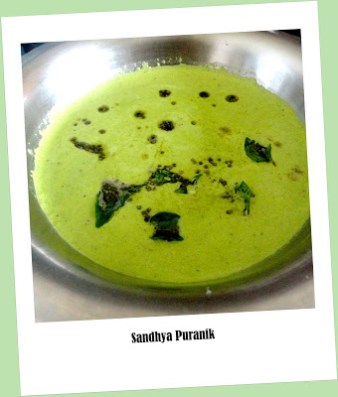 The delicious and equally healthy tambali is ready to be served with  rice.