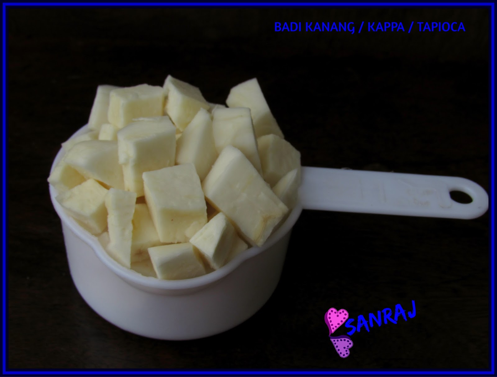 - Kappa / Tapioca – 1 heaped cup (cleaned and chopped to small pieces) / ½ part of a medium Tapioca