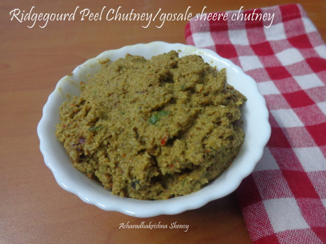 Ghosale means Ridge gourd and shir means its peel.This is a healthy and lipsmacking chutney.It is high in dietary fibre.We G.S.B konkani’s serve this chutney as a side dish with rice or with porridge.