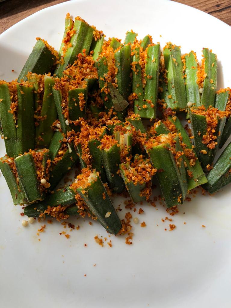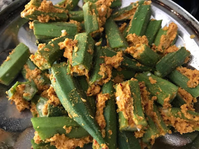 • Cook on low flame till the ladies finger has cooked well . ( you may sprinkle a litlle water if necessary )