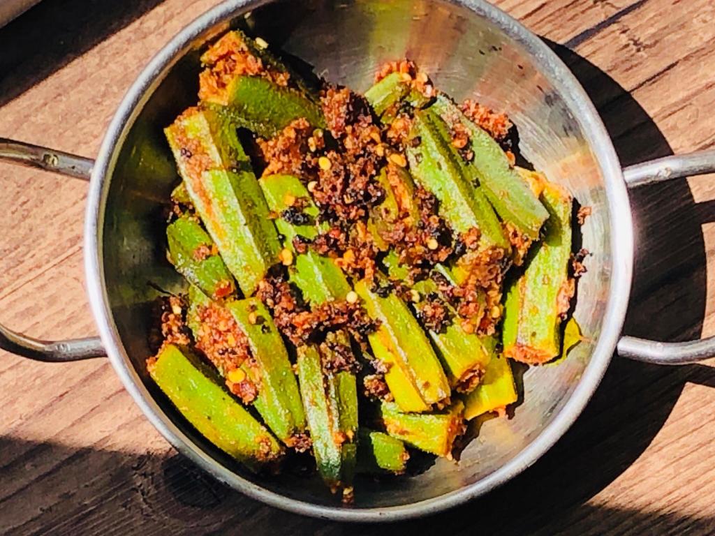 • Cook on low flame till the ladies finger has cooked well . ( you may sprinkle a litlle water if necessary )