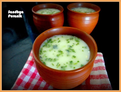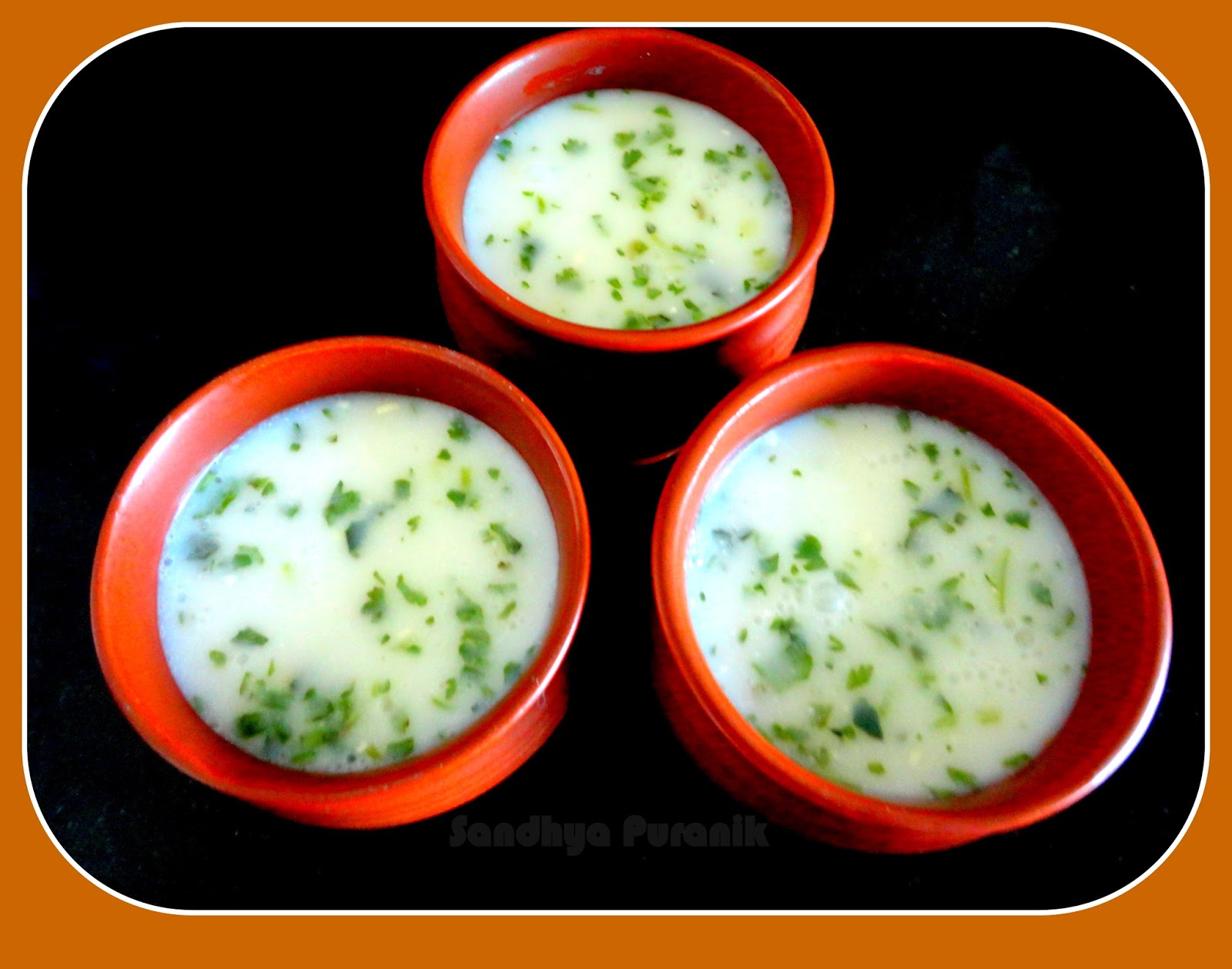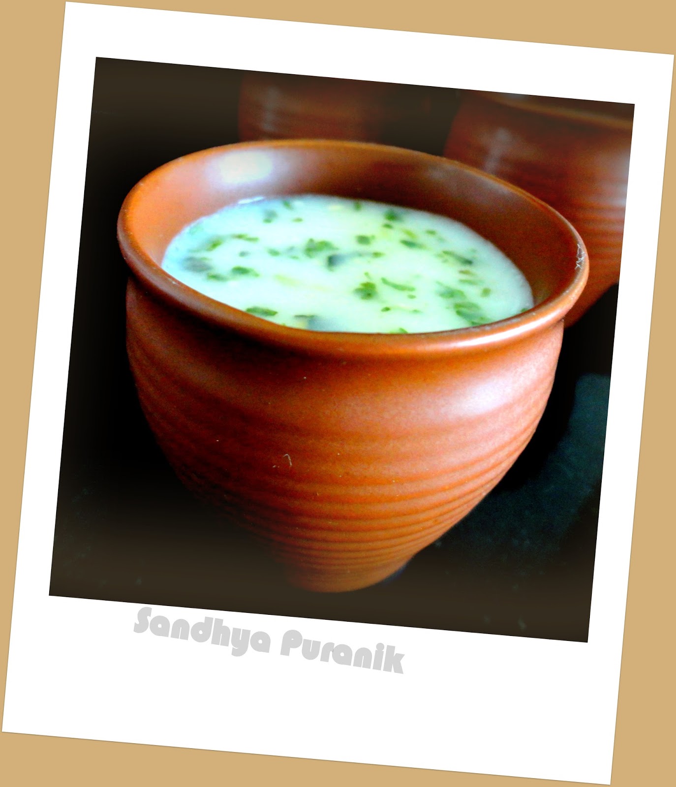 Taak is buttermilk in Konkani .Buttermilk is used in various dishes in our cuisine apart from having it as such as an appetizing drink at the end of a meal. Some even have “takka sheeth “meaning buttermilk with rice and a meal is said to be incomplete without it. We do prepare flavoured buttermilk too on various occasions like weddings,get togethers etc to be had after a heavy meal.The version I am sharing today is the one which is common at our home specially in summers or after a special festive meal.This is a healthy drink with various herbs and can be had anytime of the day in summers.