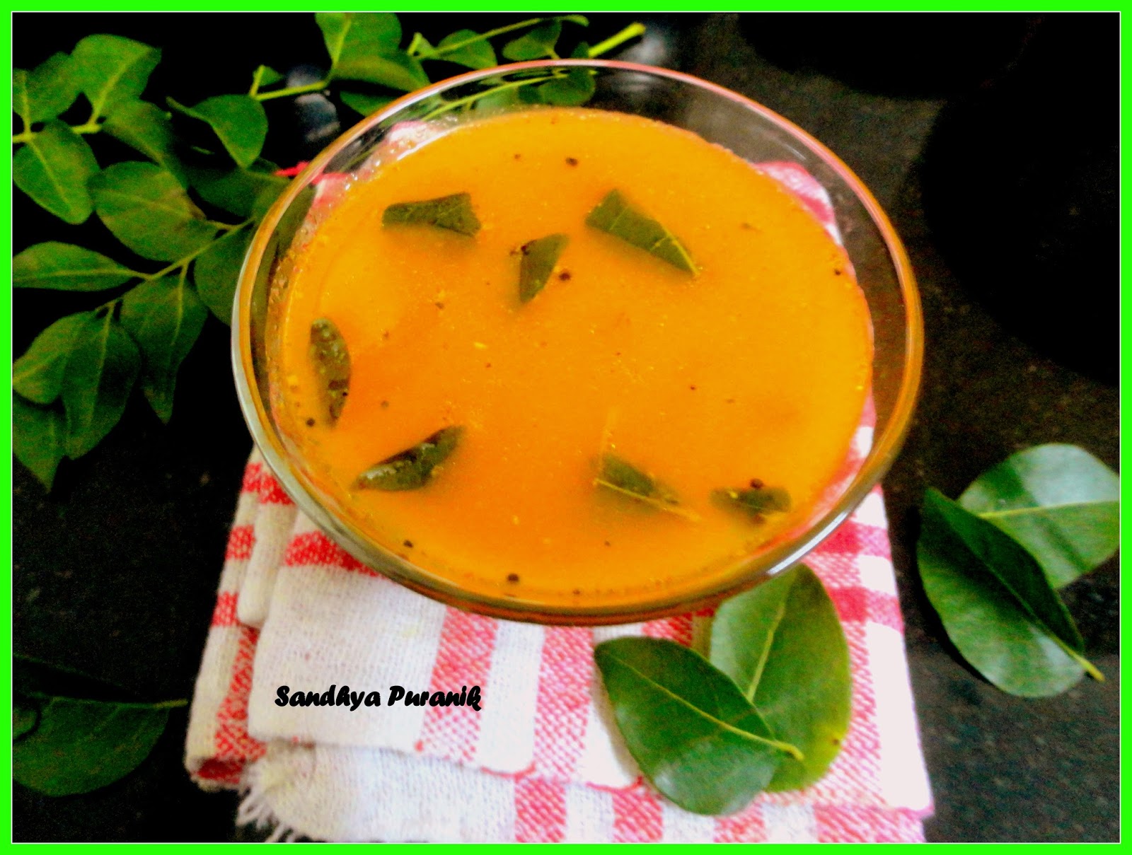 Saaru is a thin watery based accompaniment to rice.We prepare varieties of saaru using simple ingredients – many of them already documented in this blog by me and my co author friends. Today sharing one more tasty and healthy saaru using curry leaves other than the basic ingredients. Curry leaves has numerous health benefits and it is recommended highly to be included in our diet. Give this saaru a try which is easy and healthy at the same time.