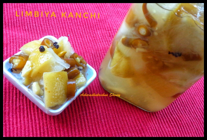 Kanchi is nothing but lemons that have been pickled in salt and their juice with other ingredients like ginger and green chillies and are kept for a period of time.During this process the lemon loses its bitterness and becomes soft.These preserved lemons taste awesome and delight your taste buds especially when a person has low appetite or are sick.This is normally served with gruel/rice /porridge.