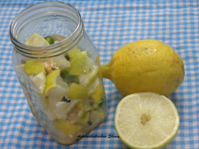 One of our member/friend Vidya Shenoy gave me big size lemons grown at her home.I pickled them and thought to share the same with you all,hoping that It will be useful for those who are not aware of the pickling process. Please check the notes section given below.