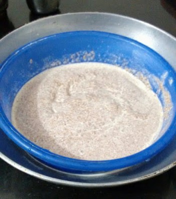 Do this two more times so that you get a smooth batter without any husk . Collect the batter & discard the husk .