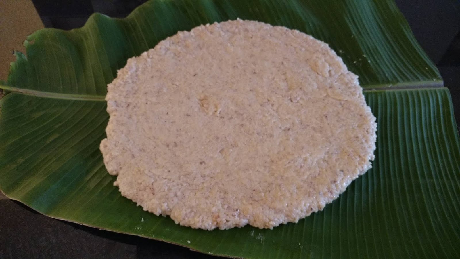 Smear some ghee on a plate or banana leaf , transfer the cooked pongolu to it and spread evenly.