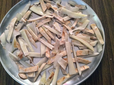 Ingredients :- Peels of Tapioca and salt to marinate . Oil to fry the dry peels .