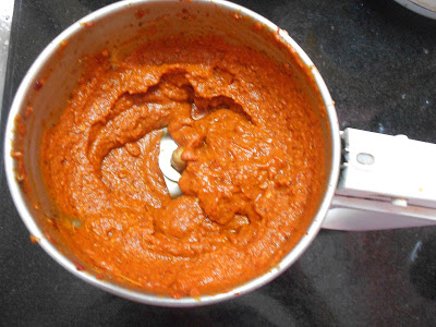 - Add the drained water only that you had kept aside and grind to a fine paste .DO NOT use plain water to grind .