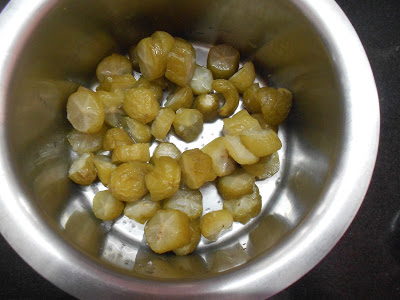 - Apply salt and keep overnight in a glass bottle . Next day remove the pieces into a dry vessel & keep the water it had let out ,