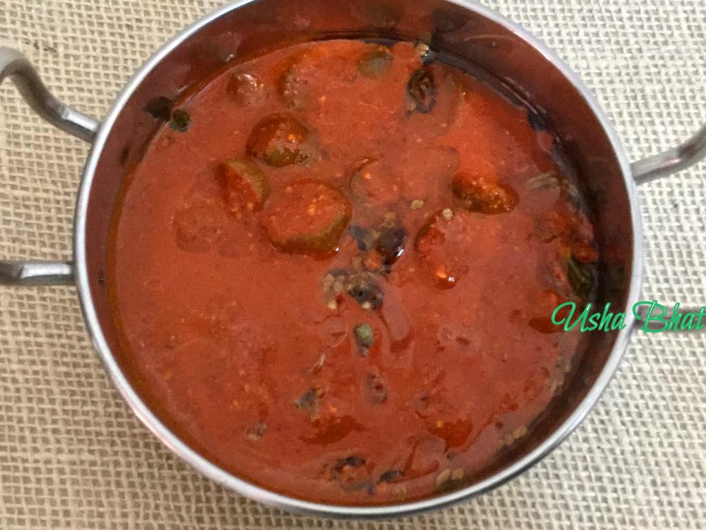 Pickles are very much in demand at home ! So I try to make all varieties as & when each ingredient is available in each season . The other day I got some fresh Bimbuls/ birmi karmbals / Bilimbi.(known as tree Sorrel in English ) Since I already had a stock of thorros / puddigalle ..I decided to make this nonche . This is a great combo with breakfast dishes like idlli, polos etc and also with rice . So let’s see the recipe –