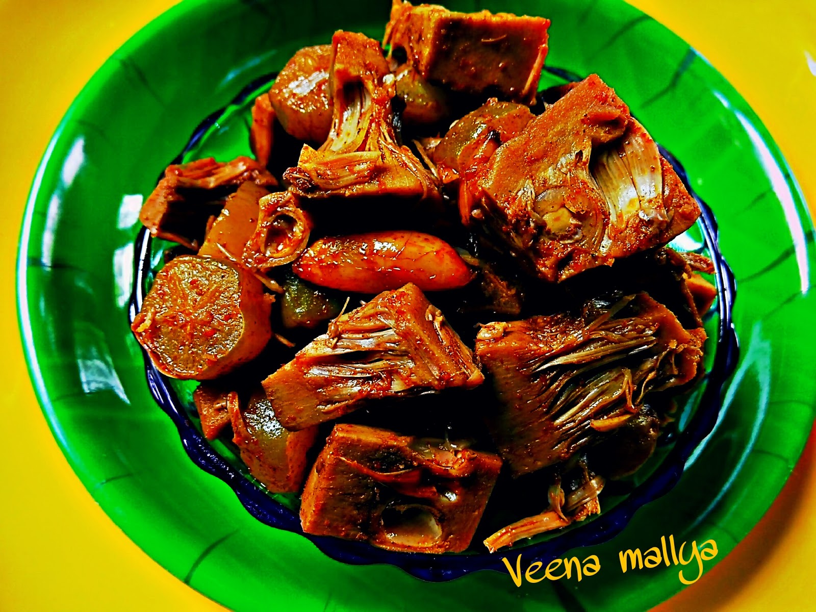 - Peeled, cleaned , cubed , cooked raw jack fruit – 1 bowl.