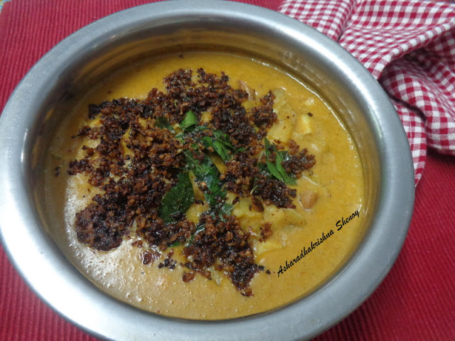 Again heat little oil and roast grated coconut along with turmeric until the coconut turns to golden brown.Now pour this on the curry.