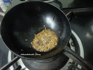 Remove the lid of the cooker and check whether the seeds are cooked and soft enough.Add the ground masala paste,add 1 cup water and bring to boil.(The curry becomes thick as and when its boiled,so can add enough water to the consistency required).
