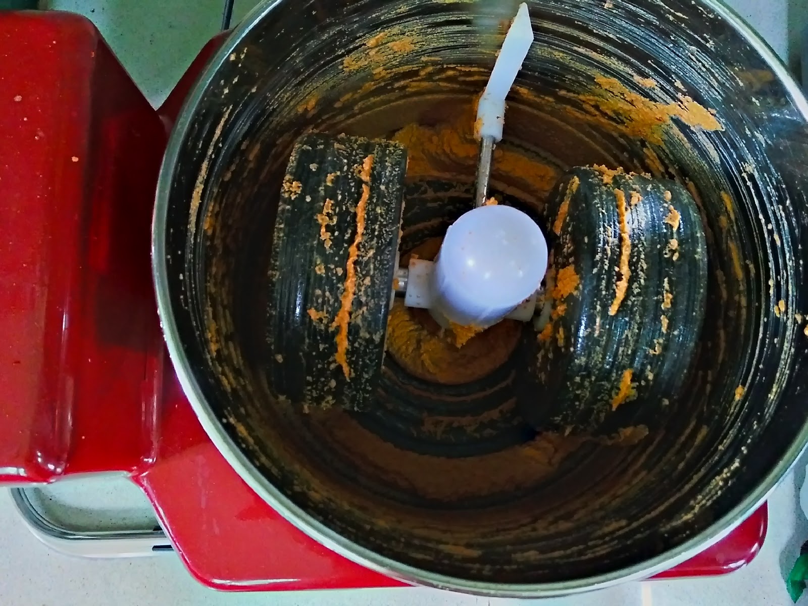 Roast the red chillies . Grind the freshly grated coconut, , red chillies, tamarind to a very very smooth paste ,