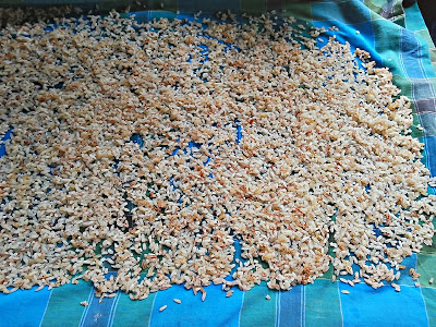 - Wash and soak the parboiled rice for one hour in water. Spread it on a clean ,dry cloth for at least 30 minutes.