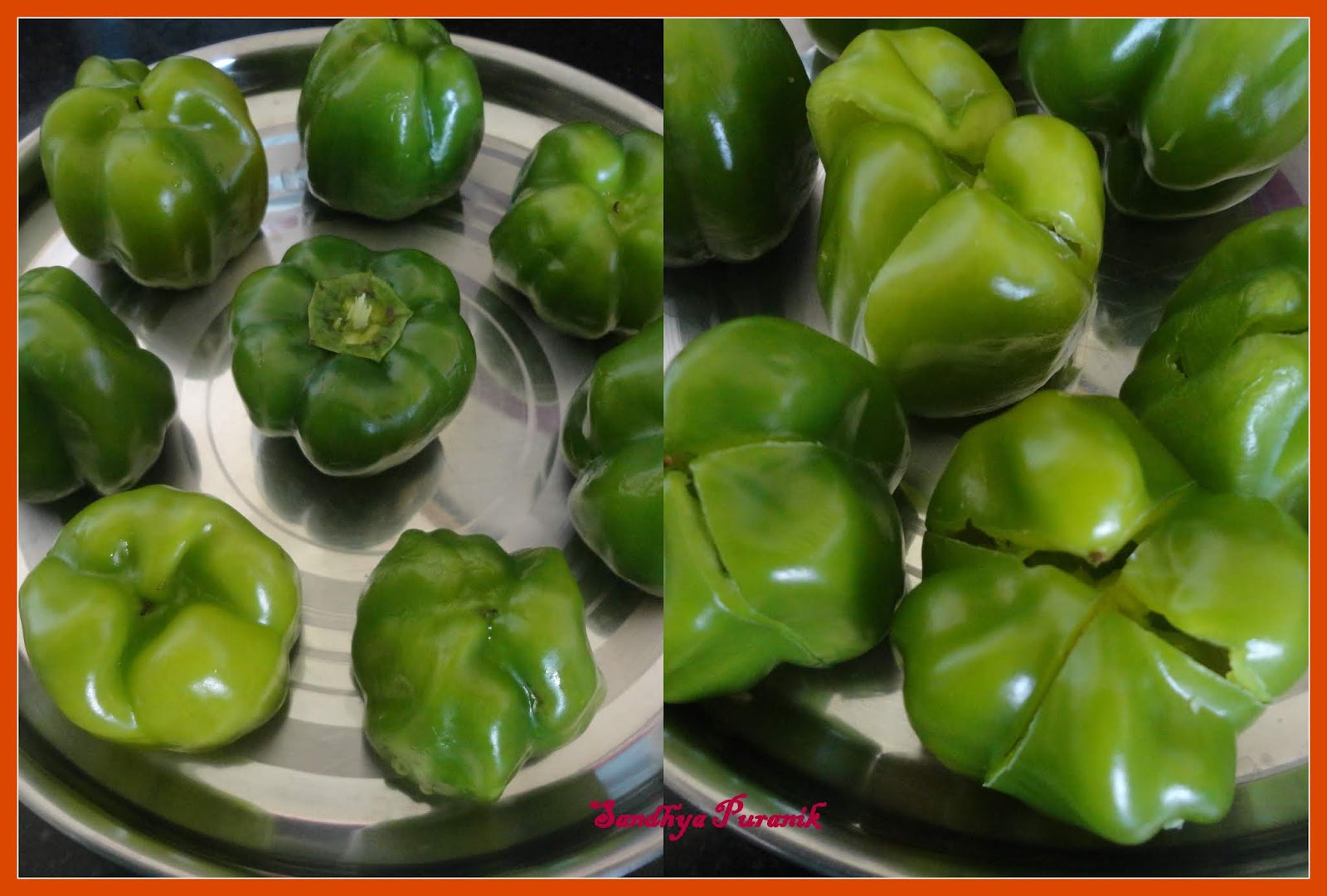 - Thin skinned small variety capsicums are best suited for this but you may use the large ones too if the small variety is not available.