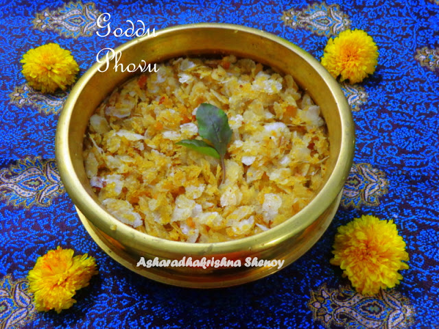 Godu Phovu is a traditional konkani naivedya prepared on auspicious occasions and festivals. This is a very simple naivedya prepared with thin variety phova and jaggery, flavoured with cardamom. I have already shared the panka version (making with jaggery syrup) HERE in this blog.