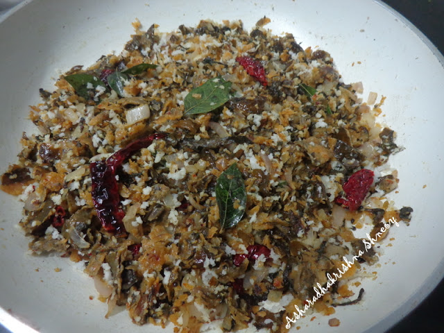 Add the chopped pathrado and saute well ,cover and cook for 2 minutes