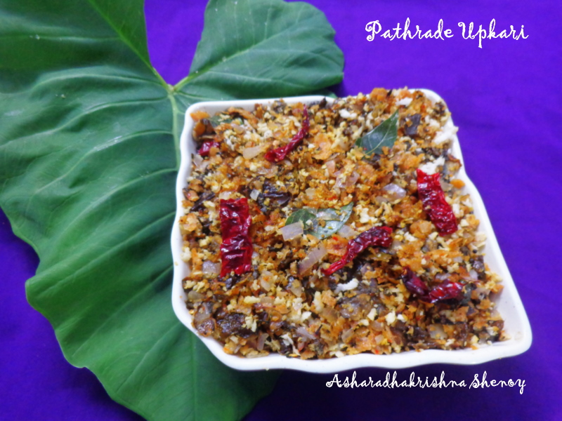 Pathrado is the most popular dish of the konkani community prepared with arbi/colocassia leaves.It is loved by all and is a must on festivals like Gowri Pooja and Ganesh Chathurthi. We already have the recipe of pathravodo/pathrado and few other varieties in this blog under the heading side dish and snack.
