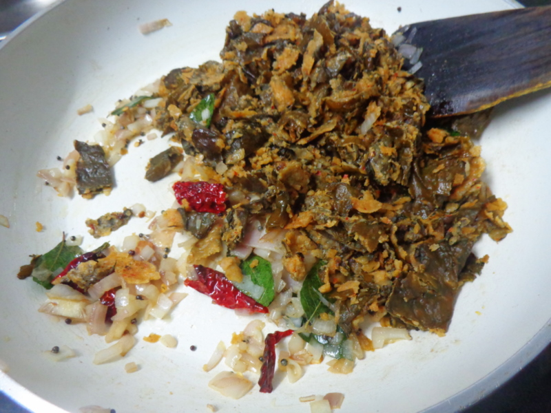 Add the chopped pathrado and saute well ,cover and cook for 2 minutes