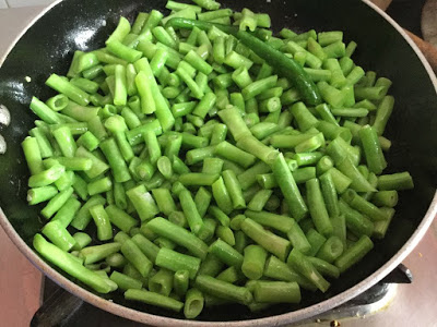 3. Now lower flame to sim , You can notice that the beans has let off water . Now cover and cook till almost done .