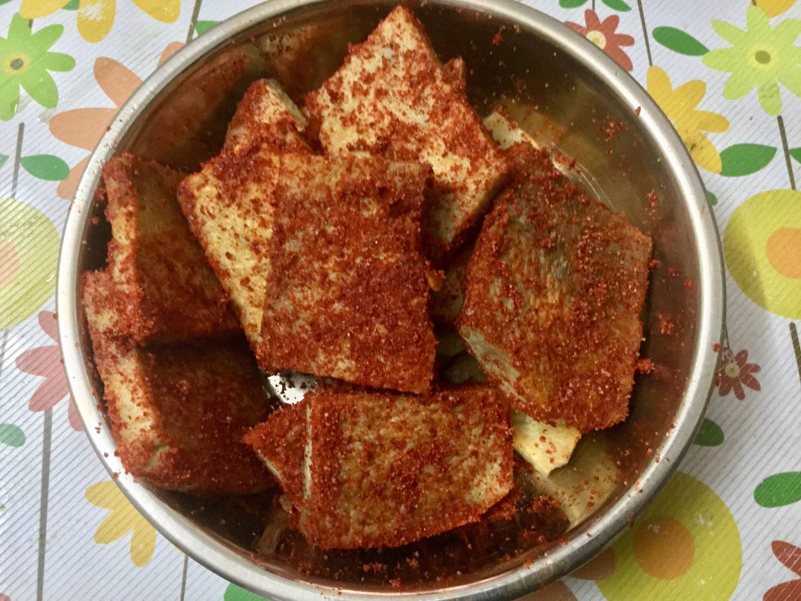 Coat the pieces with this mixture well