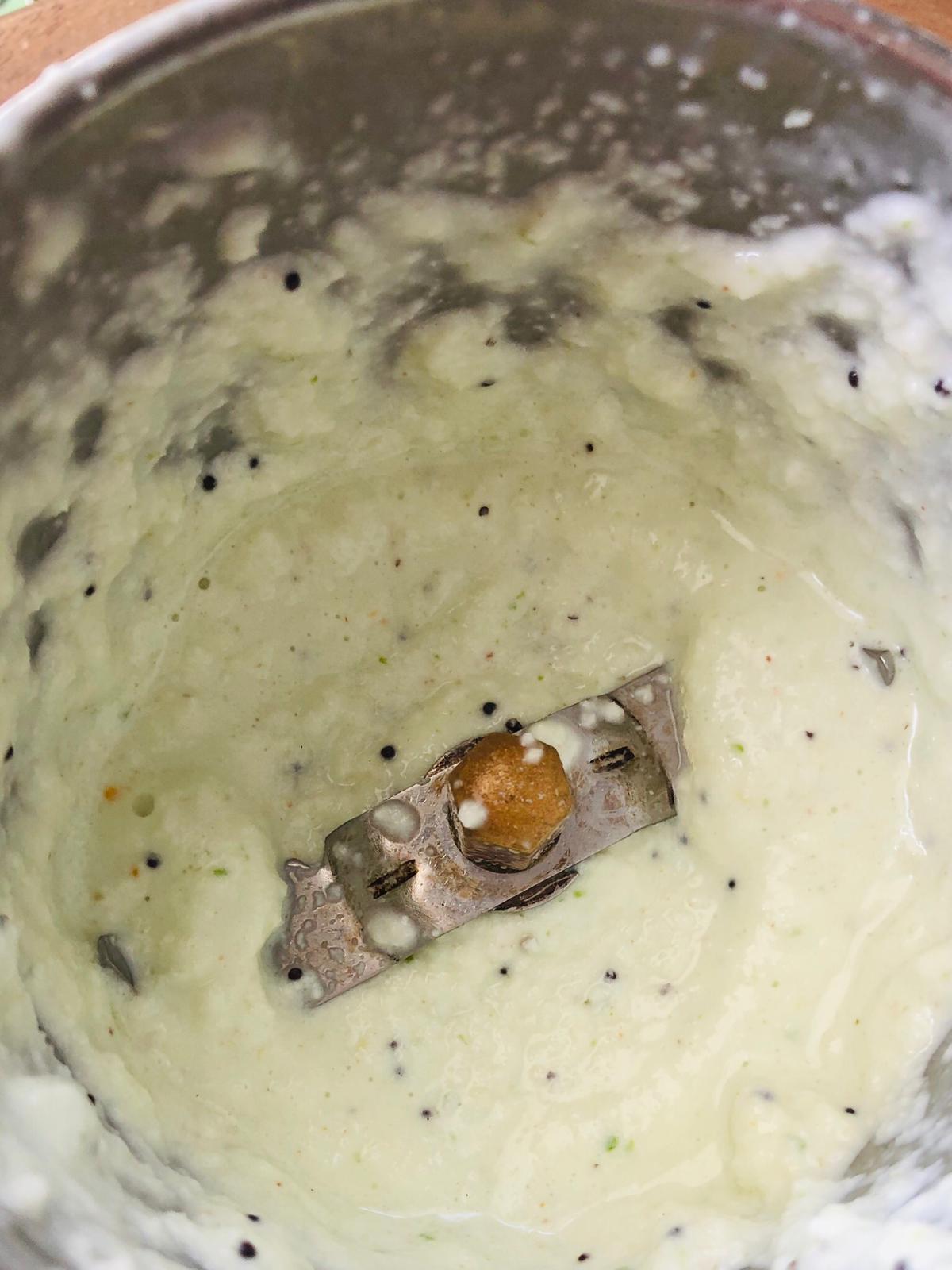 - Grind the coconut , chillies , curry leaves with the curds to a fine paste .