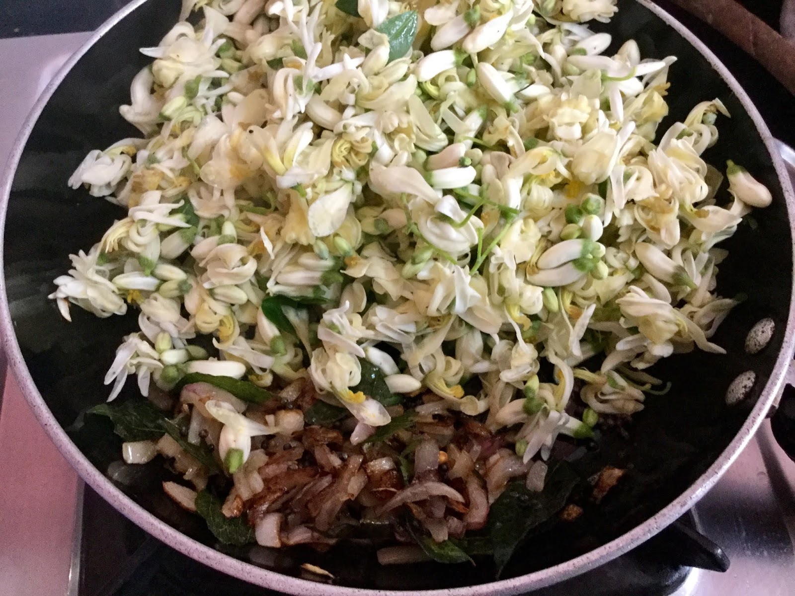 Masingha Phool means Drumstick Flowers.They are nutritious and organic as it is mostly seen in backyard of the houses.This is a coconut based semi gravy curry to be had as a side dish with rice.