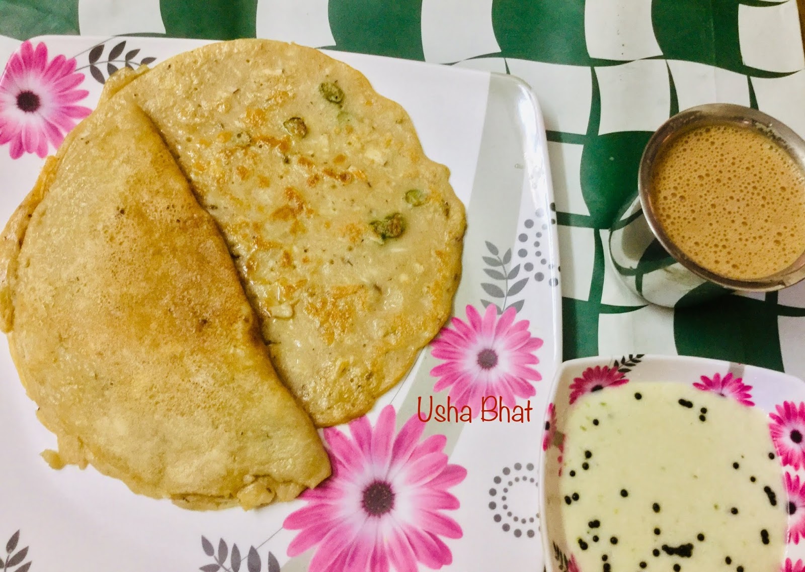 When joint families were the norm cooking food in large quantities had to be as quick as possible and yet filling and tasty for the many hungry family members . And mainly made without much fuss as the ladies had loads of other duties too ! So this thick healthy dosa like breakfast was quite popular in those days . I have already shared a sweet version. This is a spicy version ! Now adays most like paper thin dosas but these too are no less tasty !So let’s give it a try !