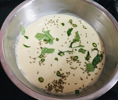 Mix the flour , green chillies , jeera , coconut , curry leaves and salt . Add the onions ( if adding ), Mix well and then add water to make a thick batter , ( almost like idli batter ) !